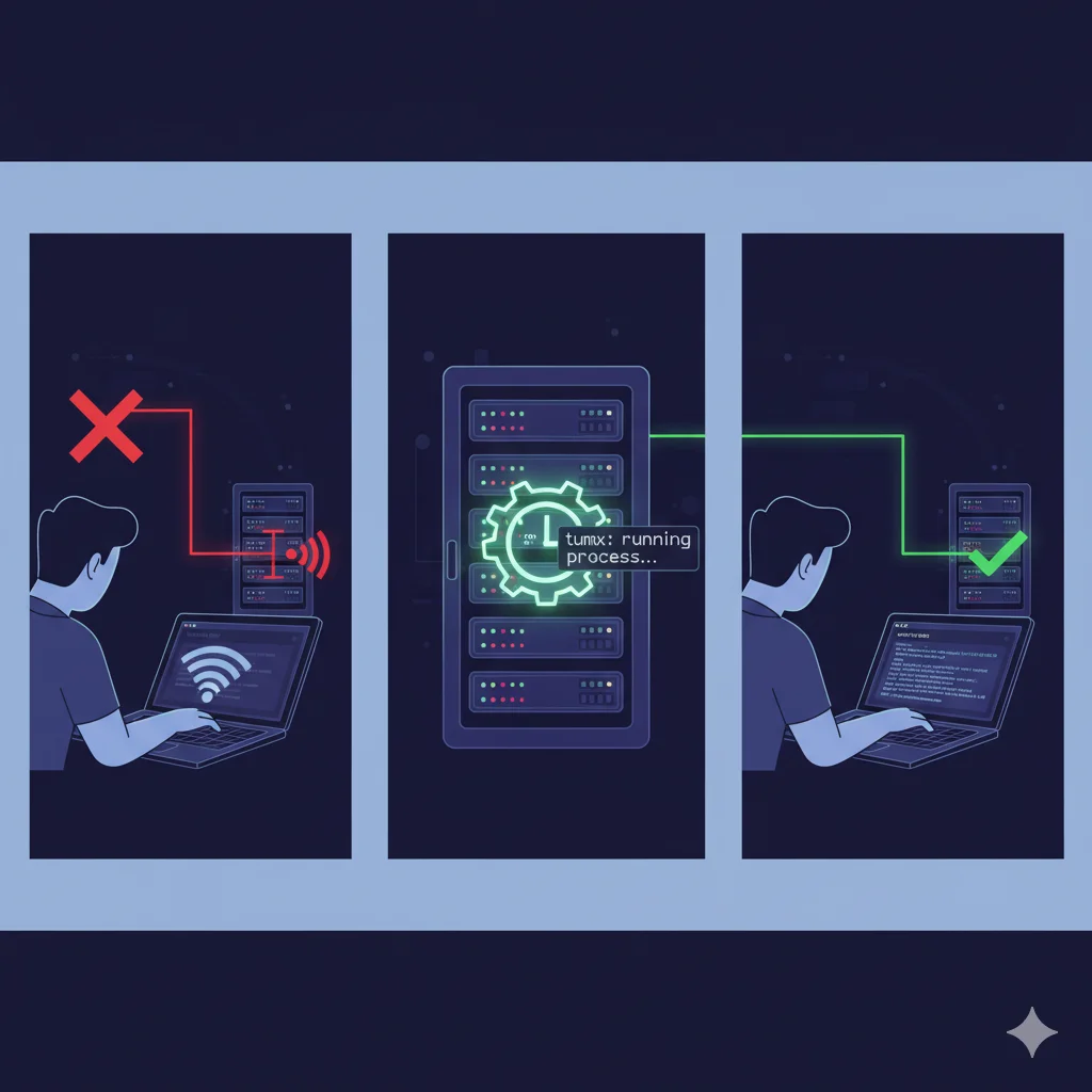 La razón principal para usar Tmux o Screen es la capacidad de desconectar (detach) tu sesión de terminal y dejar tus procesos ejecutándose en un segundo plano seguro en el servidor. Esto es un salvavidas cuando trabajas a distancia a través de SSH.